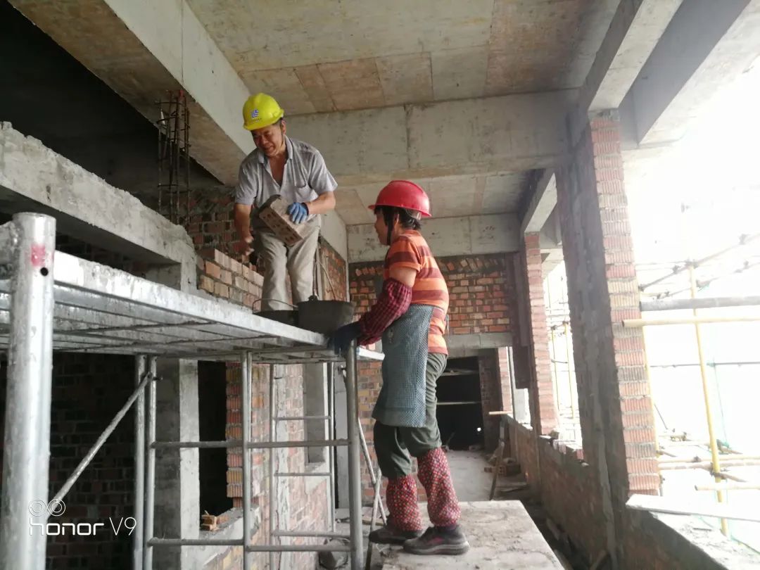 這對(duì)來自港南區(qū)人民醫(yī)院項(xiàng)目工地上的“夫妻檔”,正在進(jìn)行砌磚作業(yè)。微駝的背影,臉上洋溢著幸福的笑容。女人和男人默契的配合,溫馨和感動(dòng)緩緩流淌在心間。疫情期間,集團(tuán)公司全力保障農(nóng)民工工資及時(shí)足額支付,因?yàn)閷?duì)建筑工人們來說,最大的心愿就是有工開、有活干、有飯吃、有錢領(lǐng),這樣簡(jiǎn)單又平凡的生活,就是一生。在蓮城的項(xiàng)目工地上,像這樣的“夫妻檔”還有很多很多……他們整天與鋼筋混凝土為伍,與烈日星辰為伴,他們?cè)谏彸前残墓ぷ?,因?yàn)檫@里有一份穩(wěn)定的保障,有撐起一個(gè)家庭的希望!