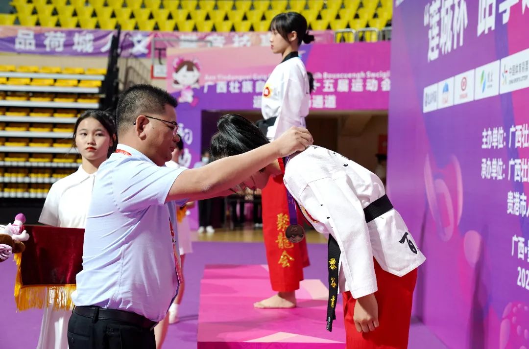 9月15日,自治區(qū)第十五屆運動會“蓮城杯”跆拳道比賽在貴港市體育中心拉開帷幕,來自全區(qū)14個設(shè)區(qū)市共343名跆拳道選手參加比賽。集團公司副總經(jīng)理謝喬勇出席頒獎儀式并為獲獎選手頒獎。