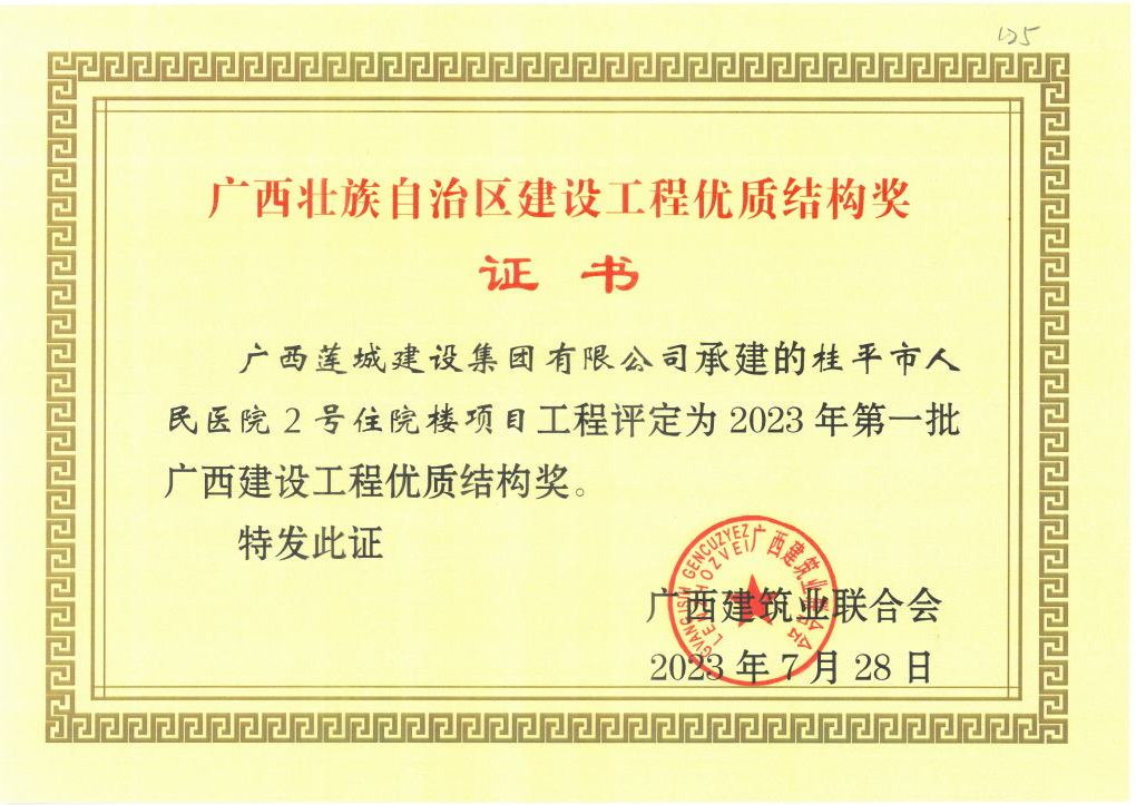 同時,由集團公司承建的順祥府1#、2#、3#、5#、6#樓及地下室工程榮獲2023年上半年廣西壯族自治區(qū)建設(shè)工程施工安全文明標準化工地獎;桂平市易地扶貧搬遷長安工業(yè)集中區(qū)標準廠房項目榮獲2023年貴港市建設(shè)工程優(yōu)質(zhì)結(jié)構(gòu)獎。