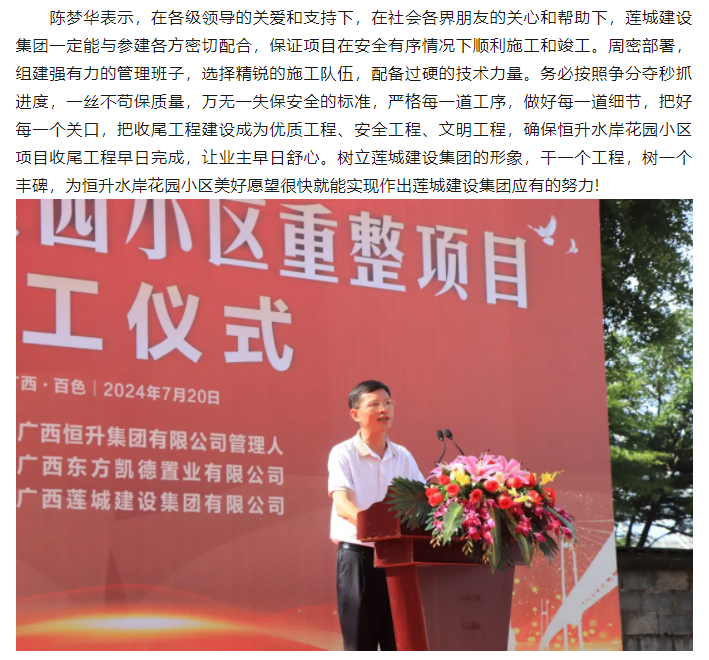 集團(tuán)公司領(lǐng)導(dǎo)出席恒升水岸花園小區(qū)重整項(xiàng)目開工儀式