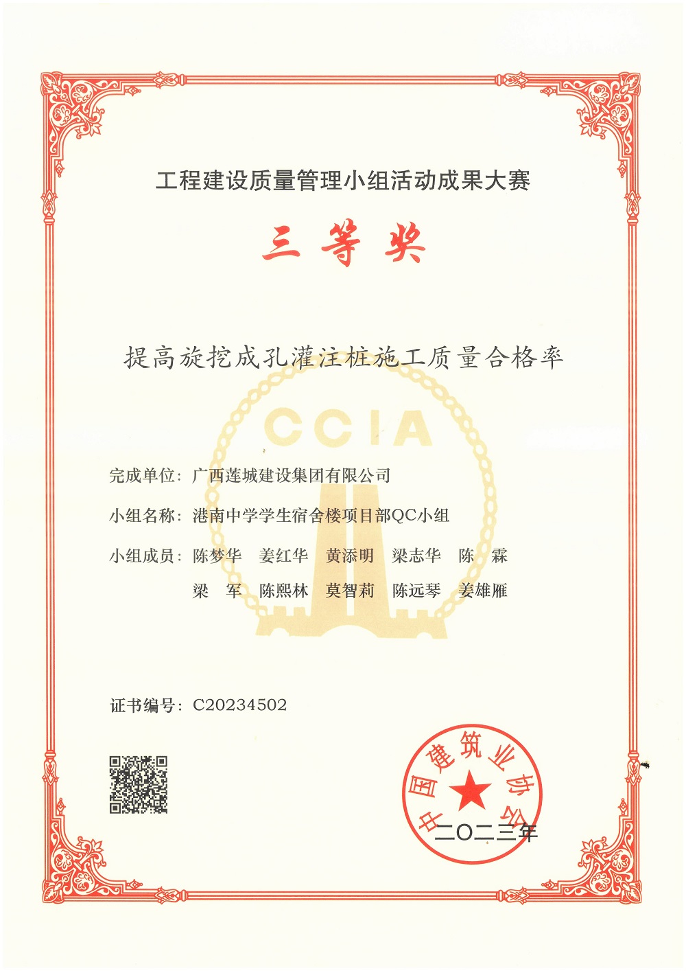 2023年工程建設(shè)質(zhì)量管理小組活動成果大賽QC小組