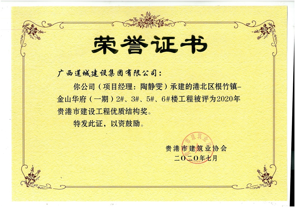 2020年貴港市建設(shè)工程優(yōu)質(zhì)結(jié)構(gòu)獎(jiǎng)港北區(qū)根竹鎮(zhèn)-金山華府(一期)2#、3#、5#、6#樓工程,陶靜雯
