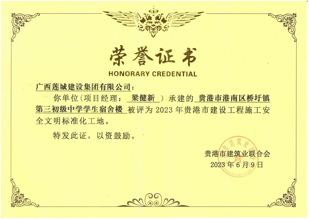 貴港市港南區(qū)橋圩鎮(zhèn)第三初級(jí)中學(xué)學(xué)生宿舍樓項(xiàng)目,項(xiàng)目經(jīng)理:梁健新