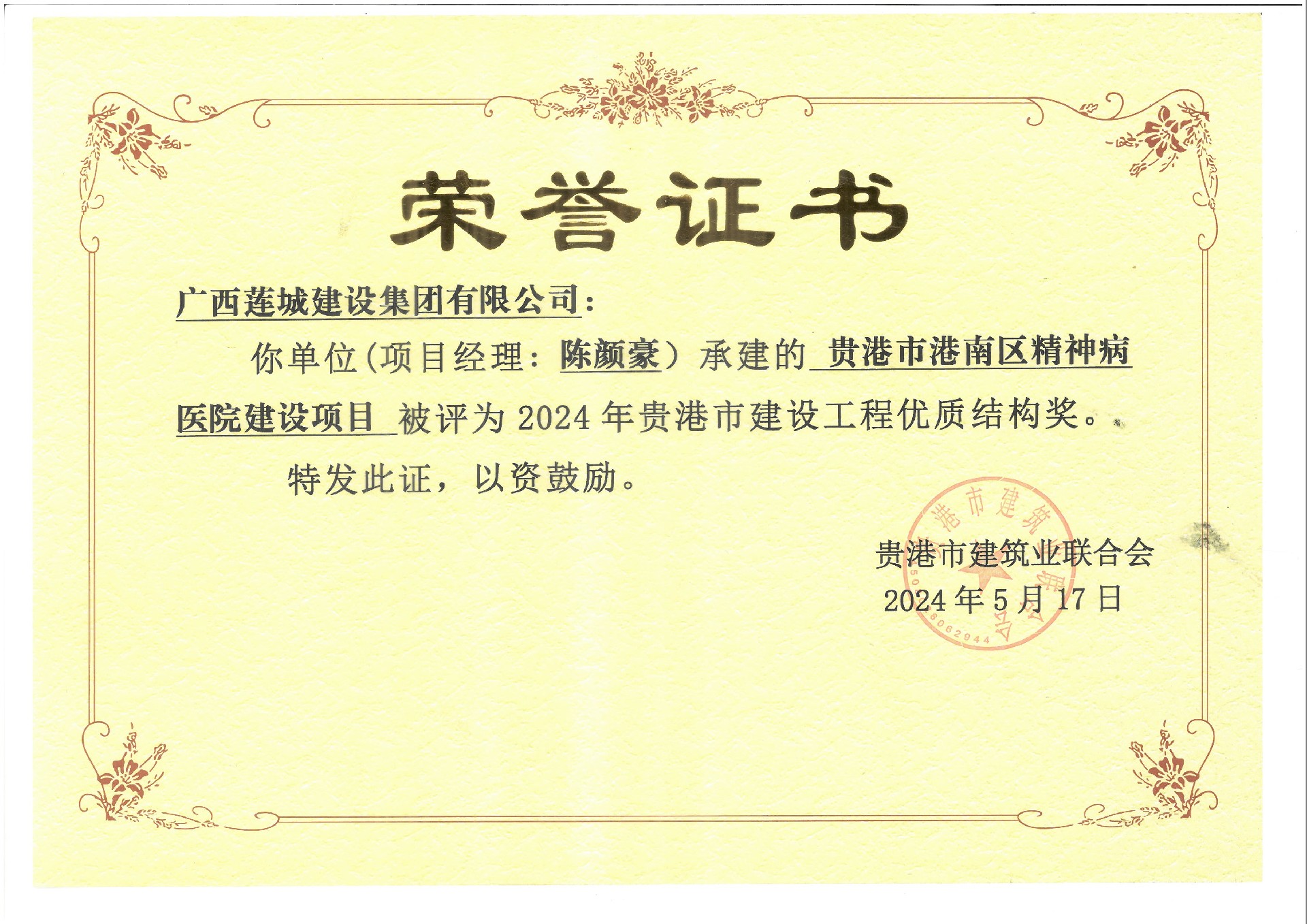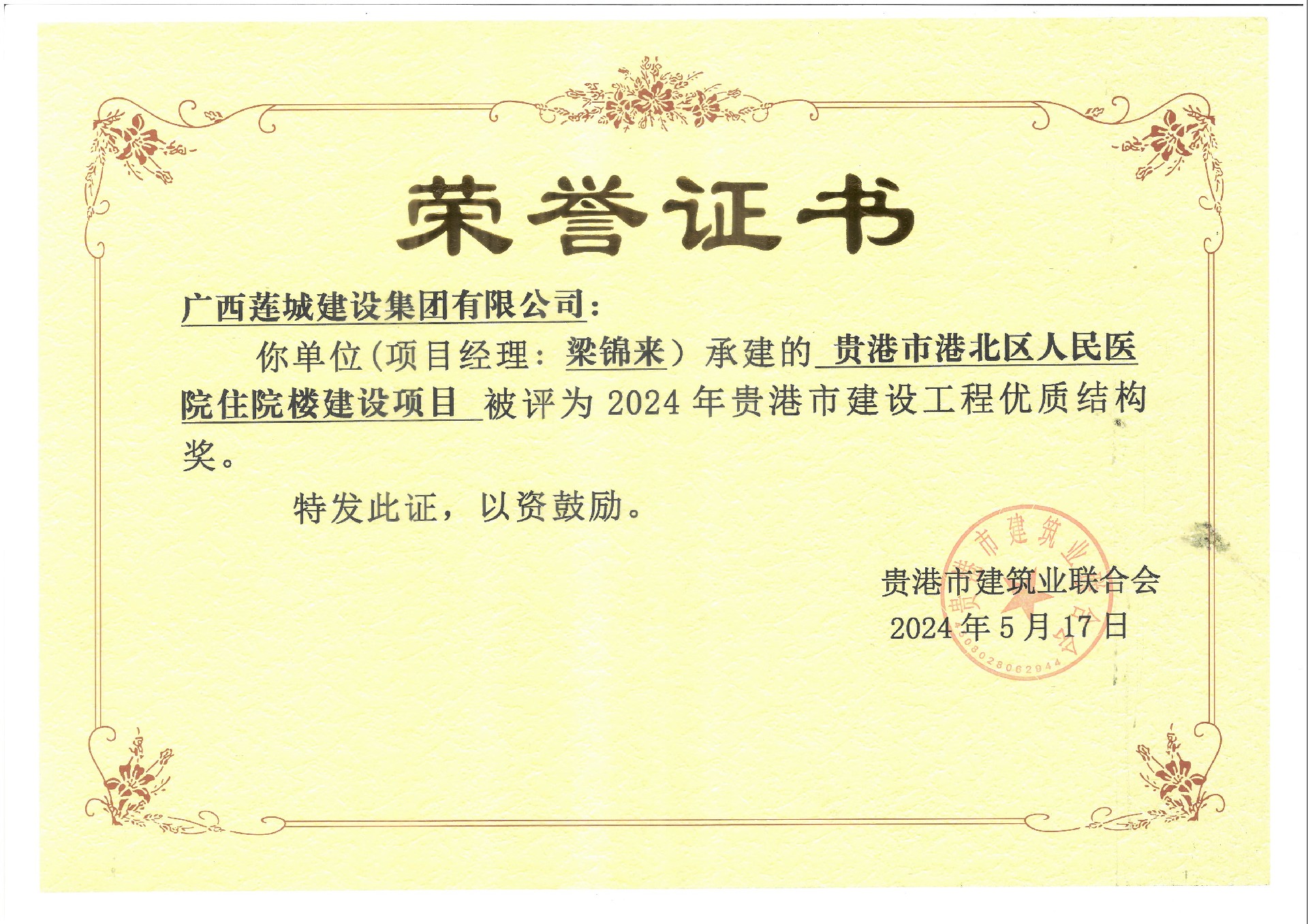 2024年貴港市建設(shè)工程優(yōu)質(zhì)結(jié)構(gòu)獎
