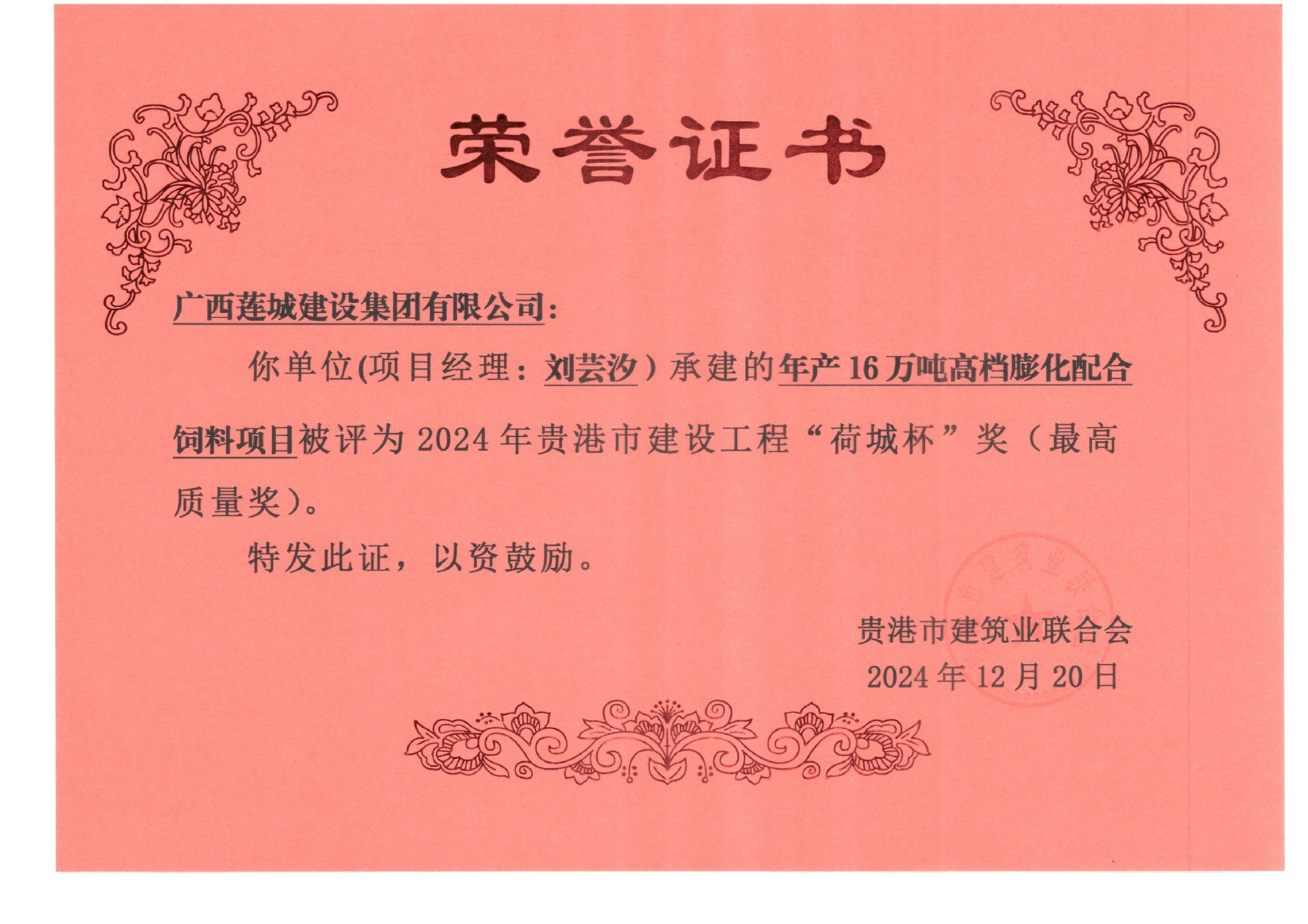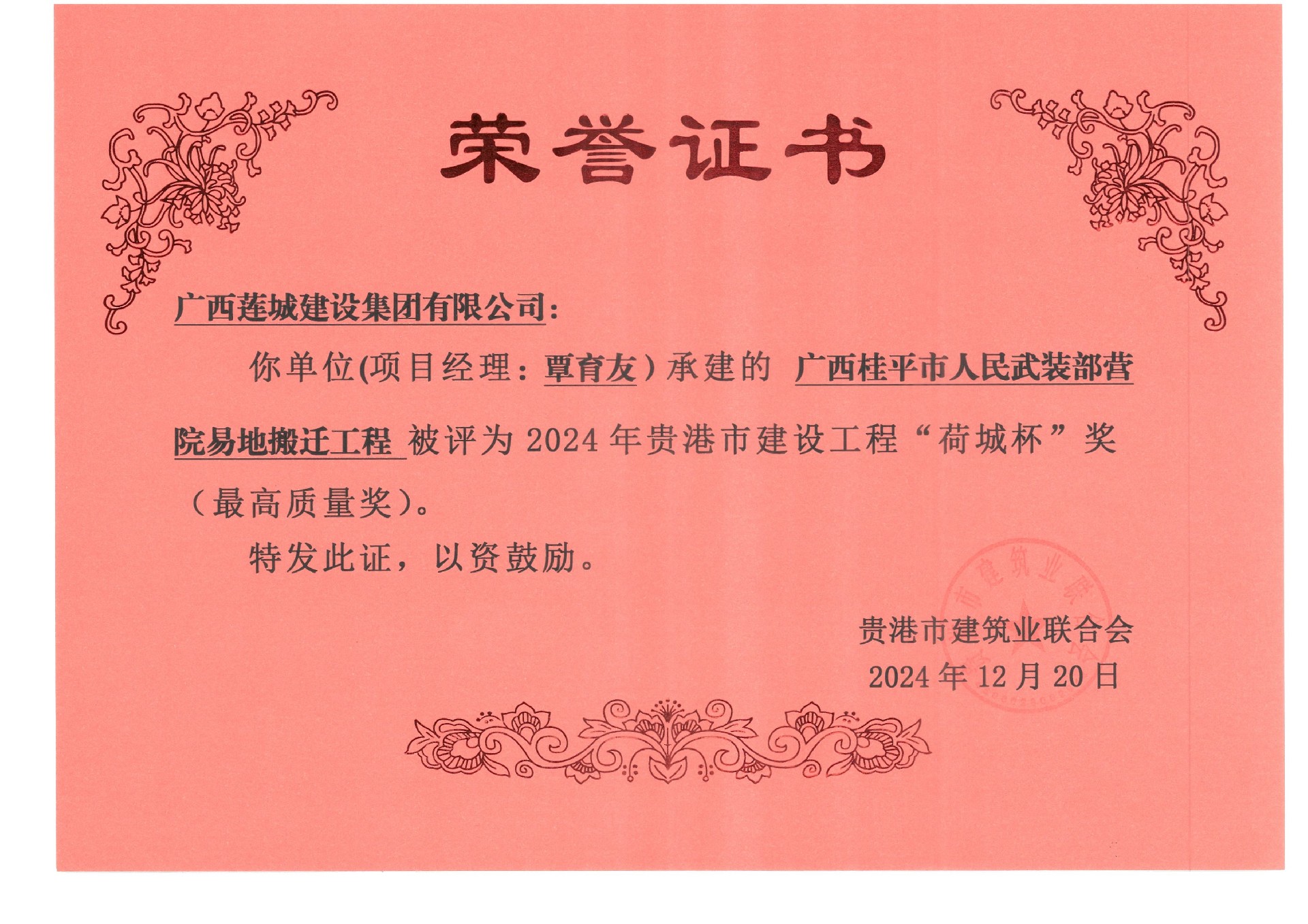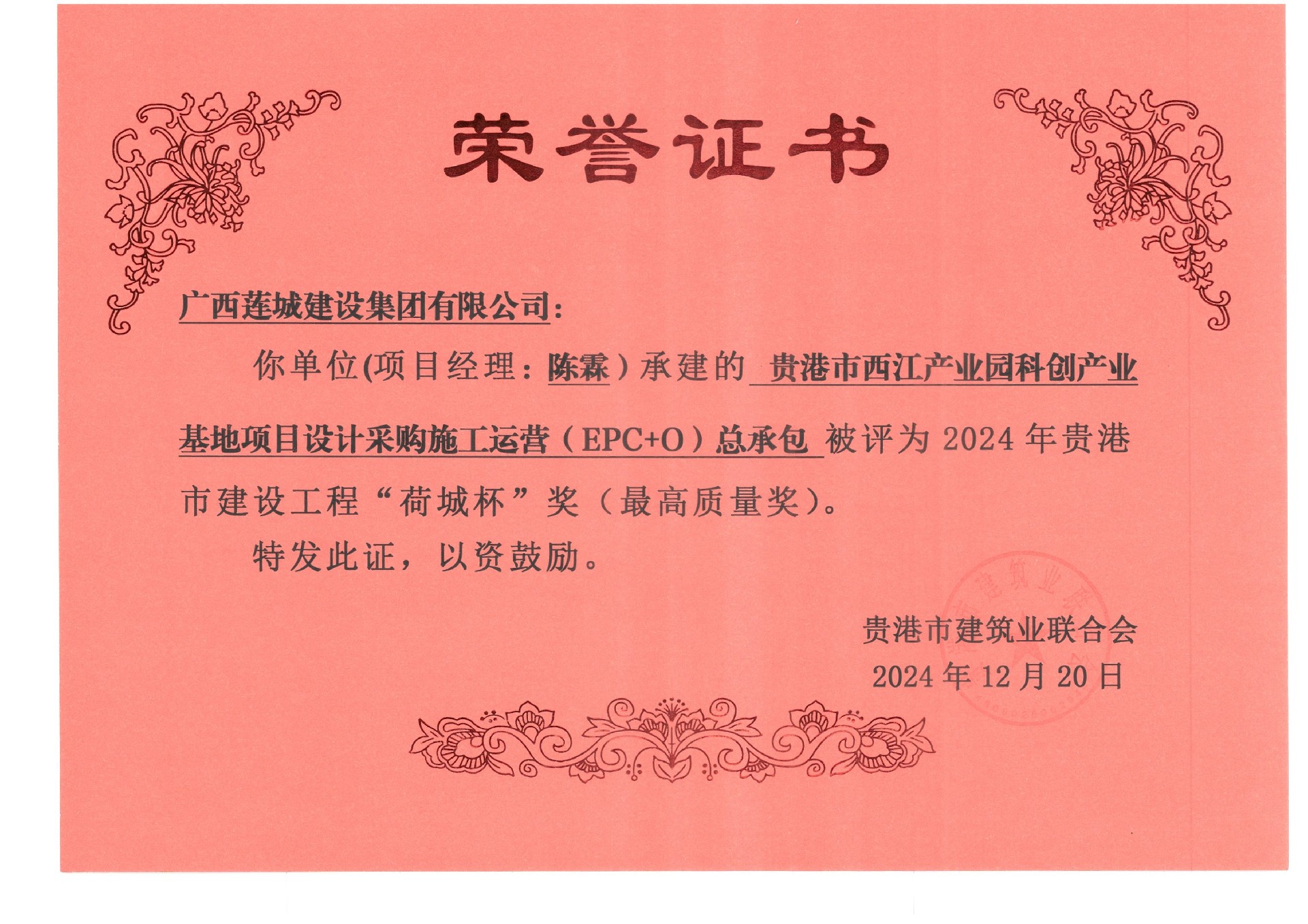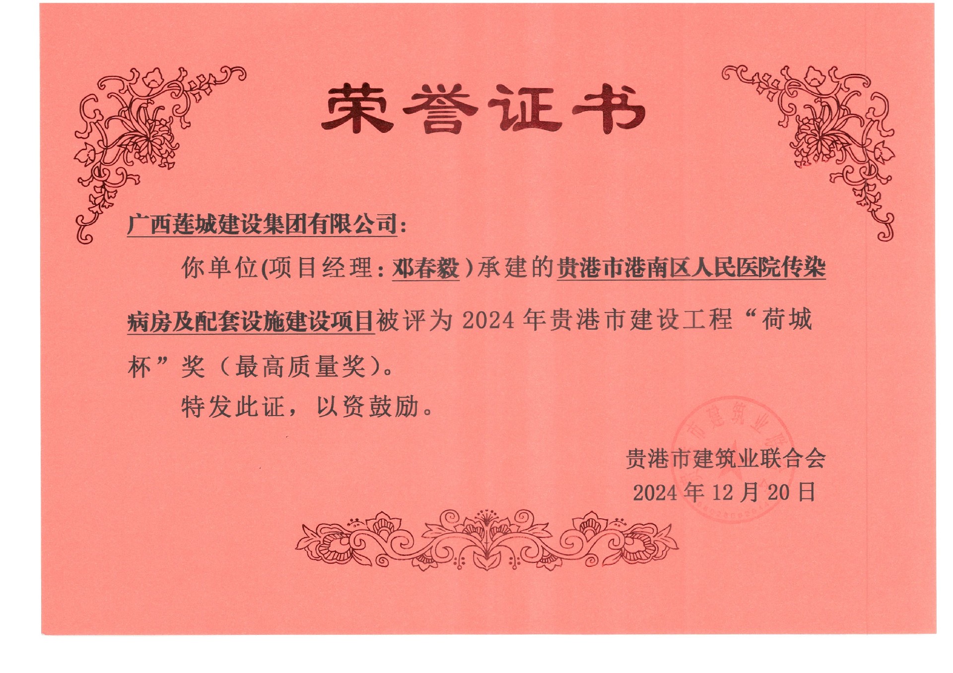 2024年貴港市建設(shè)工程“荷城杯”獎(最高質(zhì)量獎)