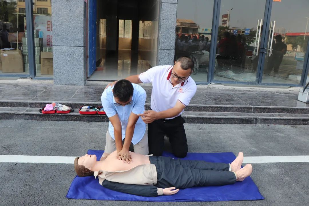 本次活動(dòng)分為兩個(gè)階段。第一階段,港南區(qū)紅十字會(huì)對公司全員進(jìn)行應(yīng)急救護(hù)技能培訓(xùn)。實(shí)操過程中,老師一邊念著“口訣”,一邊通過“模擬人”向大家演示心肺復(fù)蘇術(shù)、人工呼吸法等緊急救護(hù)技術(shù),提醒大家要根據(jù)被救者的實(shí)際情況進(jìn)行施救,避免造成“二次傷害”?,F(xiàn)場的員工認(rèn)真聆聽,并積極參與到心肺復(fù)蘇術(shù)實(shí)操演練中,有不規(guī)范的動(dòng)作老師立即手把手進(jìn)行了指導(dǎo)和糾正。