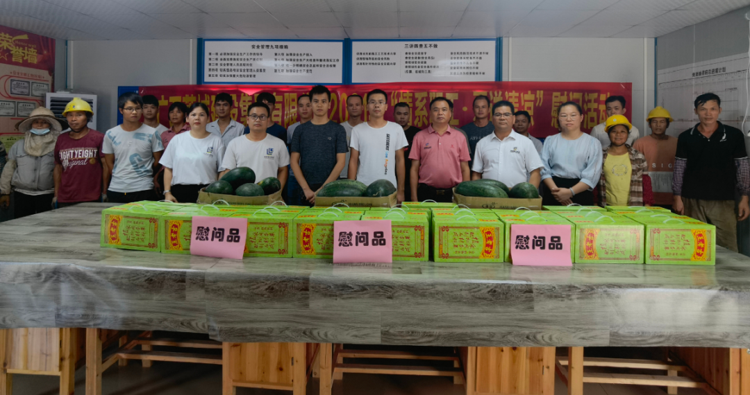 為切實做好夏季防暑降溫工作,關(guān)心和維護職工身心健康,8月25日下午,集團公司副總經(jīng)理、總工程師姜紅華,總經(jīng)理助理、經(jīng)營處處長謝喬勇等一行6人前往港南區(qū)婦幼保健院項目、順祥府項目、貴港市西江產(chǎn)業(yè)園科創(chuàng)產(chǎn)業(yè)基地開展“情系職工 夏送清涼”慰問活動,對在酷暑難耐的炎熱天氣中仍堅守工作崗位的項目基層職工進行慰問,并送上王老吉、西瓜等清涼飲品。